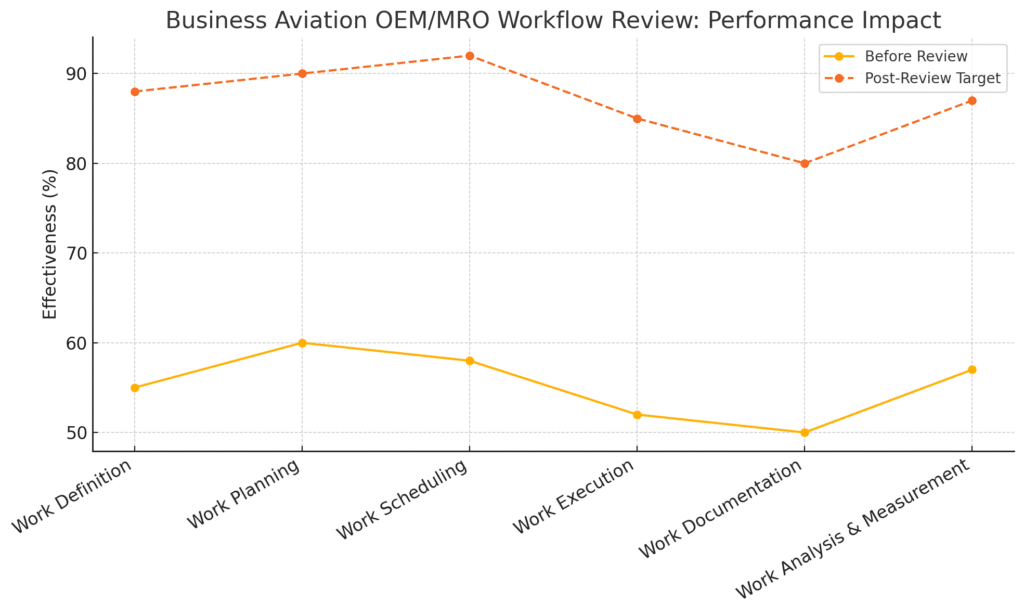 In today’s high-stakes aviation landscape, efficiency is everything. That’s why a premier Business Aircraft OEM and MRO service provider partnered with INTERIM CEO and Business Partners to conduct an operational review aimed at identifying inefficiencies and charting a fast path to performance improvement. This long-established service provider is known for its custom business aviation solutions and maintenance services. With increased program complexity and customer expectations, leadership recognized the need for structured, data-backed improvements.